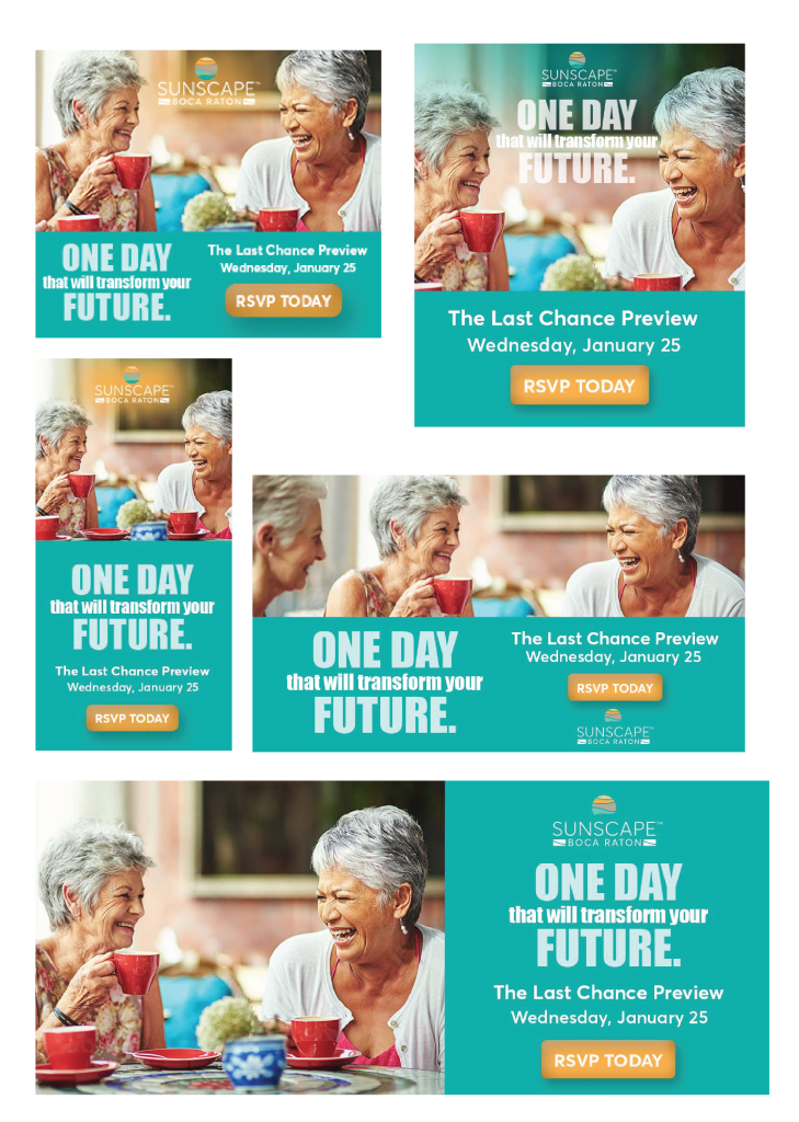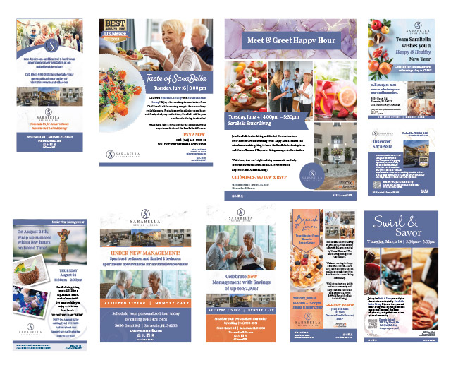 Bold, performance-driven campaigns that help brands stand out, from strategic messaging to cohesive visuals. Includes work created for 30+ senior living communities while at AgeWell Solvere Living.